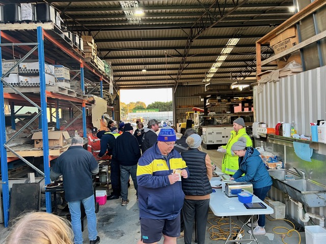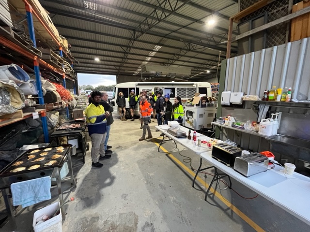 In early 2022 one of our guys was doing some cleaning in our Cobden shed. He lent on his broom, scratched his chin and started thinking… “I wonder whether we would be able to host a breakfast BBQ in here? For our locals? And maybe use that to help raise money for some decent local causes?”